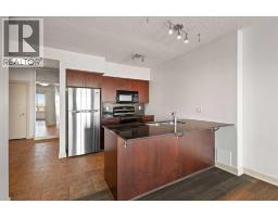 Designed for effortless daily living, this north-facing 10th-floor condo combines skyline views with immediate access to transit and on-site amenities. Featuring 9-foot ceilings, an open-concept layout, freshly painted interiors, and expansive windows, this home feels bright, modern, and move-in ready. The kitchen is designed for both everyday living and entertaining with maple cabinetry, sleek upper storage, black appliances, a brand-new refrigerator (2025), modern fixtures, and a generous breakfast bar anchoring the living space. The bright living room flows seamlessly to a cozy balcony where you can enjoy breathtaking downtown and mountain vistas while grilling on the natural gas hookup, perfect for summer barbecues and year-round enjoyment. The primary bedroom offers comfortable accommodation while the versatile den provides the perfect space for a home office or guest room, plus the convenience of in-suite laundry with a new stacked washer and dryer (2024) simplifies everyday chores. This pet-friendly, professionally managed building offers 24-hour security, heated underground parking, three high-speed elevators, a party room, a modern lobby with updated furniture, a sunroom on the 17th floor, and a serene rooftop garden where panoramic downtown views create the perfect backdrop for relaxation. One of the building’s standout features is direct heated underground access to Save-On-Foods and the Shops at Heritage, along with a pedestrian bridge providing a short walk to the Heritage LRT Station for quick downtown access. For outdoor enthusiasts, nearby bike trails, Glenmore Reservoir, Fish Creek Park, and numerous green spaces offer endless recreation options. Whether you're a first-time buyer, investor, or young professional seeking low-maintenance urban living, this exceptional home delivers comfort, convenience, and style in one of Calgary's most connected neighborhoods. Don't miss this opportunity to make this your new home! (id:36536)