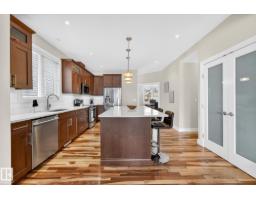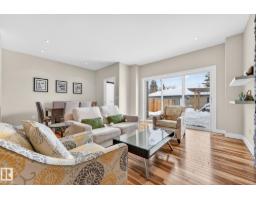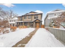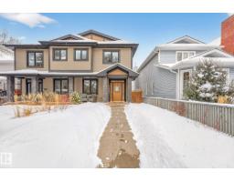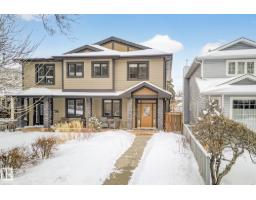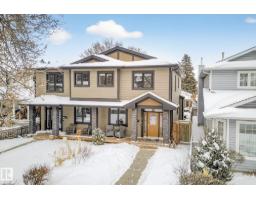 Welcome to Riverdale – one of Edmonton’s most sought-after communities, just minutes to downtown and steps from the river valley trails. This fully finished 1,863 sq ft executive home is designed for modern living, delivering sophisticated interiors and functional spaces. The main floor features a large living & dining area, den & chef’s kitchen designed for entertaining, complemented by rich Brazilian pecan hardwood throughout. Upstairs you’ll find three spacious bedrooms, convenient second-floor laundry, & a stunning primary retreat complete with a large walk-in closet and luxurious 5-pc ensuite. The fully finished basement adds even more living space with a generous rec room, fourth bedroom, 4-pc bath, and abundant storage. Enjoy low-maintenance living with ecoscaping in the front and a thoughtfully designed backyard showcasing stone patios, wood decks, pergola, a fountain, and beautiful perennials. The oversized double garage is insulated & heated. An exceptional opportunity in an unbeatable location. (id:36536)