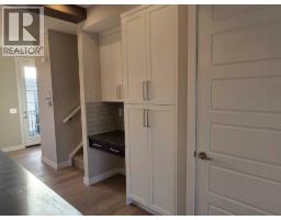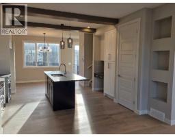 IMMEDIATE POSSESSION, END UNIT, SIDE ENTRY TO BASEMENT. DOUBLE DETACHED GARAGE, DECK, FENCED AND LANDSCAPED, NO CONDO FEES. Welcome to the "St. Andrews" townhome, by Award winning, Master Builder, Douglas Homes Ltd. From the front covered porch, the entry opens onto the spacious great room with 9ft ceiling and gleaming hardwood floors throughout the main floor. The aspiring chef will appreciate the well planned "island" kitchen. From the upgraded 42 inch, soft close cabinets, to the gorgeous quartz countertops, everything is within easy reach. The sparkling stainless steel fridge, the glass top, self cleaning electric range, dishwasher, and over the range microwave/hoodfan are all just an arms length from the kitchen sink. Opposite side of the island, provides a convenient pantry, and desk with upper cabinet for all those recipe books you will collect. The spacious dining area features a large picture window looking out upon the back yard with room for the kids to play, with a rear entry door to the deck for those summer bbq's. Here also is a 2pc powder room for your guests convenience, and perhaps the kids hurried need. Upstairs includes 2 good sized secondary bedrooms, a 4pce bathroom with quartz vanity and tile floors, a convenient upstairs laundry, and a spacious primary bedroom with large upsized window and ensuite bath, with walk in shower, with glass front, tile floor and again a quartz vanity. The full basement provides rough in plumbing for a future bath, one window for future bedroom, and enough space remaining for a spacious future family room if you decide your family needs room to spread. All this in the desirable new subdivision Cobblestone Creek, with tennis courts, playgrounds, future school reserve, pathways and numerous green spaces, on the western edge of Airdrie, with wide open country side, and views to the west. THIS HOMES SIDES ONTO GREEN AREA. (id:36536)