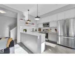 $101.36 MonthlyUpgraded SW facing corner unit in PIVOT by Averton! This stylish 3-storey townhome in sought-after Rutherford blends modern design with functional living. Enjoy abundant natural light from its desirable south-west exposure, large windows, 9' ceilings, and an open-concept layout perfect for entertaining. The gourmet kitchen has quartz countertops, upgraded stainless steel appliances, and ample cabinetry. Upstairs, you’ll find two spacious bedrooms, each with its own private ensuite, plus convenient upper laundry. Highlights include central air conditioning, custom window coverings, a sunny balcony, and a fully finished attached garage with storage. Set in a quiet, well-managed complex with low condo fees, steps to scenic trails, schools, parks, and minutes from shopping and the Anthony Henday. The end unit gives you more windows, more light, and less shared walls! A sun-filled, low-maintenance home designed for modern living in one of South Edmonton’s most convenient communities. (id:36536)