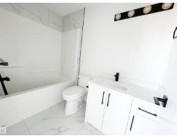 Stunning two-story duplex with LEGAL SECONDARY SUITE in the mature, family-friendly community of Crawford Plains, close to schools, parks, shopping, and transit. Offering approx. 2,400 sq. ft. on 3 levels, this property features 5 bedrooms and 3.5 bathrooms—ideal for investors or multi-generational living. The main floor includes a bright living room with an electric fireplace, access to a sun deck, and a stylish European-inspired kitchen with quartz countertops, ample cabinetry, and a spacious dining area. Upstairs offers a primary bedroom with an ensuite and a walk-in closet, two additional bedrooms, a bonus room, a full bath, and a laundry with a sink. The legal basement suite with a separate entrance features 2 bedrooms, a kitchen, a living area, a full bath, and its own laundry, providing excellent rental income potential. Modern exterior with vinyl & smart board siding, double attached garage, and an impressive 8’ front door with sidelights complete this fantastic opportunity. A Super 10! Hurry! (id:36536)