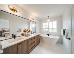 Introducing the Carbon by award winning builder Justin Gray Homes, in the beautifully curated French Country colour palette. Nestled on a 30’ pocket lot in St. Albert’s 2025 Best New Community, near future schools & rec center & nearly 2600 sqft, this home was thoughtfully created to fit the way you live, with space to grow and gather. A bright, open main floor welcomes you w/a sunlit great rm w/cozy GAS FIREPLACE, den w/frosted glass doors, & a stylish 1/2 bath. Through JG'S signature ARCHED pantry, step into the chef inspired kitchen w/custom DOVE-TAILED cabinetry, a spacious island for entertaining, & a full KitchenAid APPLIANCE PACKAGE INCLUDED. Upstairs find 4 generous bedrms, BONUS rm, & laundry. The main bath includes DUAL SINKS & a clever POCKET DOOR separating the vanity and the bath/toilet, making busy mornings a breeze. The serene primary retreat has a large WIC & a luxurious 5PC SPA LIKE ensuite w/soaker tub & water closet. Complete w/OVERSIZED dbl car garage w/drain. Call this home today! (id:36536)