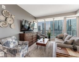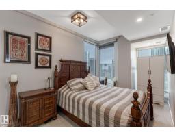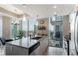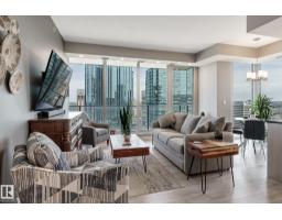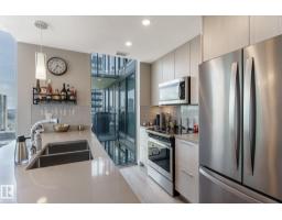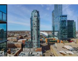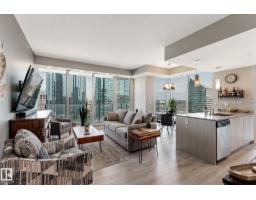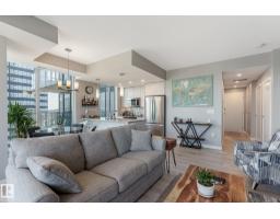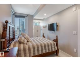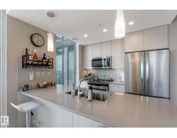 $586.16 MonthlyCUSTOM ONE OF A KIND UNIT IN THE WHOLE COMPLEX! Boasting the Square Footage of a Two Bedroom this One Bedroom / Two Bath unit has lower condo fees, great space is in mint condition. You get all the advantages of a larger unit with East, North, and South Views. Largest balcony!! Floor to ceiling windows offering unobstructed views of Rogers Place, Stantec Tower, and the River Valley. This unit features a modern light color pallet, designer kitchen with sit up bar, quartz counter tops throughout, built in appliances, spacious living room, dining area and window coverings! Encore Tower has a gorgeous 3 storey lobby w/full concierge service & an expansive amenity floor including a fitness facility & indoor/outdoor entertaining lounge. Located on the corner of 102 Ave & 103 Street, just steps from Rogers Arena, ICE District, restaurants, coffee shops. Title Parking Stall #220 is conveniently located on P2 next to the elevator (This is definitely a huge bonus). This is a Must See! (id:36536)