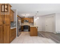 $542.59 MonthlyBeautiful and well-maintained 2-bedroom, 2-bathroom condo located in the desirable community of Cranston. This bright and functional unit offers an open-concept layout combining the kitchen, dining, and living areas, creating a comfortable space for both everyday living and entertaining.The kitchen features rich maple cabinetry, stainless steel appliances, modern tile backsplash, and a convenient peninsula with additional seating. The spacious living room is filled with natural light and offers a cozy corner gas fireplace with direct access to the private balcony — perfect for relaxing or enjoying your morning coffee.The primary bedroom includes a walk-through closet and a private 3-piece ensuite bathroom. The second bedroom is well-sized and located near the main 4-piece bathroom, making it ideal for guests, family members, or a home office.Additional highlights include in-suite laundry with extra storage space, durable flooring throughout the main living areas, and a well-designed layout that maximizes functionality.This unit also comes with a titled underground parking stall and private locker providing convenience and protection during the winter months.The building is well managed and offers secure entry and a welcoming lobby area. Located close to parks, schools, shopping, restaurants, and major roadways, this home provides easy access to everything the vibrant community of Cranston has to offer.A fantastic opportunity for first-time buyers, downsizers, or investors. (id:36536)