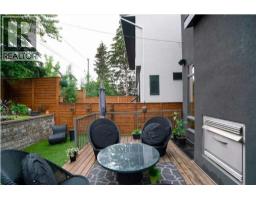 Front attached garage in the inner City!! Rare find. This high end custom executive home features; Kohler sinks and toilets throughout, Riobel faucets throughout, granite in all bathrooms and laundry room, flat ceiling throughout, locker system in the front hall, feature stone wall in the living room and stairwell, built in sound system, frosted privacy windows in the living room, 6 burner gas stove, wine fridge, shadow boxes in the kitchen, walk in closets with wood builtins in all bedrooms, central air conditioning, epoxy flooring in the garage, exposed aggregate driveway and walkways, gas fireplace on the well treed private rear deck, rooftop deck with all day sun and views of downtown.........Wow. Area is very secure thanks to the 24 hour security at the AHS facility across the street. Hours are 8am to 5pm, so a very quiet neighbor. Main entrances faces Richmond Road. The floorplan is open and bright with floor to ceiling windows. The dining room and living room areas could be reversed depending on the buyers preference. Large gourmet kitchen with a huge island and feature backsplash and hoodfan. Three large bedrooms upstairs all with walkin closets with wood built in organizers. The basement offers a 13x18 flex room with a 3pc bath and walkin closet. Ideal for a home gym, gear room or dream teenager bedroom. Two outdoor living spaces, one in the rear yard and the other is a rooftop deck. Great access to downtown, river pathway system and the mountains. (id:36536)