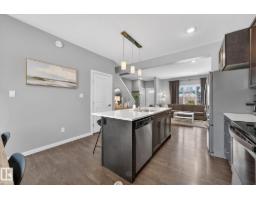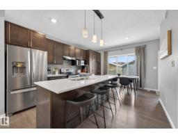 Gorgeous 3 bedroom, 3 bathroom home in family-friendly Rosenthal! This well-maintained 1,355 sq ft home features 9’ ceilings, large windows, and an open concept main floor with durable vinyl plank flooring. The upgraded kitchen offers quartz countertops, stainless steel appliances, extended cabinetry, and plenty of storage—perfect for everyday living and entertaining. Upstairs you’ll find convenient laundry, three spacious bedrooms, and a 4-piece main bath. The primary suite includes a large walk-in closet and private 4-piece ensuite. The partially finished basement features a rec room with vinyl plank flooring and room to grow. Enjoy the welcoming front porch and detached double garage, complete with a plug for an electric or hybrid vehicle. Fantastic location close to the Henday, Whitemud, Costco, River Cree, and many great amenities! (id:36536)