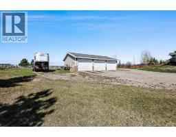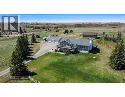 9.34 stunning acres on a hill with views of the river valley. This lovely walkout bungalow has three bedrooms up with two full bathrooms. Open living includes luxury items like quartz countertops in the kitchen, hardwood/cork/travertine floors throughout with a heated floor in the ensuite and downstairs bathroom. All closets in the house have Closet maid fully adjustable wire shelving systems. A cozy wood-burning fireplace for those chilly winter nights is a bonus. The basement has a separate private entry for extended family as well as access through the house. Multiple decks on this property allow you attain the full experience of outdoor living in the peace of the country. This property is the perfect horse set up….with multiple paddocks for rotational grazing. Two horse shelters, and multiple waterers which may be turned on or off from the house. Large barn/shop (32'x40') with approximately 120'x 80' grass arena. The water is from a well which was rated at 10-12gpm. The triple car garage completes this gorgeous property. The new owner will benefit from regular maintenance on this property which includes a new roof on house/garage and hot water tank in the last few years. The immaculate home is located 15 minutes to Calgary or Okotoks on a quiet cul-de-sac just North of the Saskatoon Farm in the hamlet of Davisburg. It is located on a school bus route servicing Heritage Heights and Okotoks schools. (id:36536)