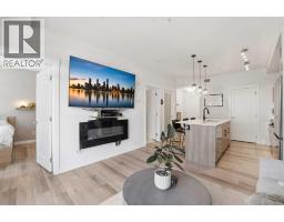 This 2-bedroom, 2-bathroom condo with AC offers a refined take on lake community living, complete with low condo fees of $327.50 including heat and water, titled underground parking, an assigned storage locker, in-suite laundry, and full access to the highly desirable Auburn Bay lake community. As you step inside, you’re welcomed by a well-appointed entryway with a convenient coat closet to your left. From here, the home opens up beautifully into the kitchen and main living space, immediately setting the tone with its bright, modern feel and thoughtful design. The kitchen is both stylish and functional, featuring ceiling-height cabinetry, quartz countertops, a stunning tile backsplash, black modern hardware, and upgraded lighting that adds warmth and character. Stainless steel appliances, a built-in microwave, sleek hood fan, and a silgranite undermount sink complete the space. Tucked seamlessly into a storage closet beside the kitchen is the in-suite laundry, keeping daily tasks out of sight while remaining easily accessible. Flowing openly from the kitchen, the living room is inviting and comfortable, anchored by a cozy electric fireplace with a built-in mantle. Large sliding glass doors fill the space with natural light and lead you onto the balcony, a outdoor retreat perfect for morning coffee, evening wine, or summer entertaining. The primary bedroom offers a calm and comfortable escape, featuring two closets and plenty of natural light. The private ensuite elevates the experience with a floor to ceiling tiled walk-in shower, quartz countertops, and an undermount sink, creating a spa-like feel without being overdone. Nearby, the second bedroom is generously sized and versatile, perfect as a guest room and/or office. The second bathroom is a full 4-piece with a tub and shower, ideal for guests or shared living. Throughout the home, thoughtful upgrades such as wide luxury vinyl plank flooring, 9-foot ceilings, air conditioning, and modern finishes create a polish ed, cohesive look that balances comfort with style. Add in the convenience of underground parking with a storage locker located directly behind the stall, and the everyday ease of condo living truly shines. Set between Auburn Bay and Mahogany, with walkable access to shops, dining, groceries, parks, and an off-leash dog park, this upgraded condo delivers everything you could hope for in a lake community - lifestyle, design, and value, without compromise. (id:36536)