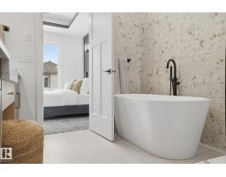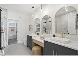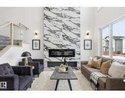 Experience refined living in this quick-possession luxury home in Beaumont, featuring a double attached garage and a separate side entrance. The main floor is thoughtfully designed with a main floor bedroom, 3-pc bath with a walk-in shower, and spacious mudroom, leading into a breathtaking open-concept living space. A chef-inspired gourmet kitchen is complemented by a dedicated spice kitchen - perfect hosting the whole family - while the great room impresses with a striking tiled fireplace and dramatic open-to-above ceilings that flood the home with light. Upstairs, discover a beautifully planned retreat with a bonus space, 4pc bath and convenient laundry with sink and quartz countertop. Three bedrooms include a lavish primary suite showcasing a spa-inspired 5-pc ensuite with double sinks, a seated makeup vanity, freestanding tub, and a custom walk-in closet designed for elevated everyday living. $5,000 appliance credit included to select your choice of appliances! (id:36536)