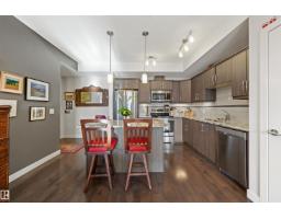 $612.33 MonthlyWelcome to this beautiful 942sqft top floor condo with a prime location! This modern south facing end unit, features a spacious kitchen with espresso cabinets, granite counters, island and stainless steel appliances.The bright open concept living room offer hardwood floors (extending throughout the unit) and patio door to massive balcony (83 sqft) with gas bbq--the perfect place to watch the sunset.Completing this unit is a primary suite (with ensuite); a second bedroom and full bathroom; and underground parking. This building boast a roof top patio and garden (with stair access right outside the unit).Enjoy the walkability of a downtown lifestyle with a short distance to shops and restaurants (including the 124 street, Unity Square, Brewery district, the dog park and river valley).The future 124 street LRT station will have you to the Ice District, Grant Macewan, U of A and N.A.I.T in no time. Move in and enjoy! (id:36536)