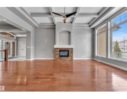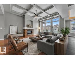 This beautifully maintained home offers 4 BEDROOMS and 3 FULL BATHROOMS with a bright, open-concept main floor featuring coffered ceilings, large windows, and a gas fireplace. The chef’s kitchen includes granite countertops, gas cooktop, walk-through pantry, and ample cabinetry, flowing into the dining area. The main floor also offers an additional bedroom and full bathroom, ideal for guests or a home office. The primary suite features a walk-in closet and a 5-piece ensuite with IN-FLOOR HEATING. The FULLY FINISHED BASEMENT includes IN-FLOOR HEATED FLOORING, LARGE REC ROOM, WET BAR, FLEX SPACE, and A THEATRE ROOM WITH PROJECTOR and SPEAKERS included, plus TWO BEDROOMS with walk-in closets and a FULL BATH. Built-in speakers throughout, central A/C, and a quiet cul-de-sac location close to schools, parks, golf, and amenities complete this exceptional home. (id:36536)