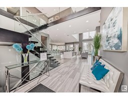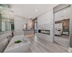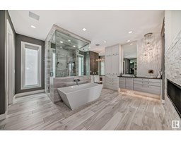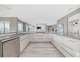 Exquisite European architecturally designed, custom-built by an Award Winner Vicky Homes. This elegant mansion offers 6478 sqft total , 5 bedrooms, 6 baths, 4 balconies, 3 offices, 4 car garage boasting prestigious on huge lot 12,134 sqft in Cameron Heights overlooking the Saskatchewan River. The extravagant great room has tiled glass door fireplace, 3D Ceiling designed open to the below concept with formal dining area with epic view & tons of light. Elegant Kitchen has 2 signature waterfall quartz countertop island, heated porcelain flooring & remote blinds. The upper master suite has breakfast bar, fireplace, stunning ensuite free-standing tub, steam shower, 2 vanities, makeup desk, lovely closet, private seating area with its balcony plus an office space that all faces the river. Additional 3 bedrooms have their own ensuite and private balcony. Flex room, 2nd office, kids tech station. Entertainment walkout basement has beautiful great room, gym, theatre room, 1bdrm, pool, hot tub, wet bar, change room (id:36536)