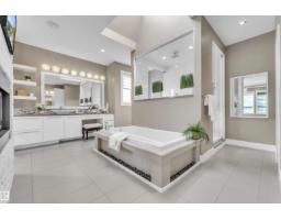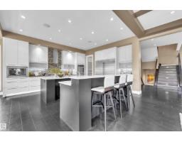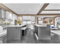 Modern luxury welcomes you to this expansive walk out estate w/over 6500sqft of living space in the prestigious community of WestPointe Estates.Built by Award-winning Vicky Homes this residence will impress at every turn.The spacious chefs kitchen features dual islands,premium appliances,quartz+walk-thru pantry.The main floor offers living room,great room,office,mudroom,2pc bath+access to the two garages.Upstairs the primary retreat features a spa ensuite,grand closet+coffee bar.Three additional bedrooms(each w/ensuites),craft room+homework space complete upper level.The basement is an entertainers dream,offering sports media room w/TV wall,bar,hidden wine cellar,separate theatre room,gym,5th bedroom,bath+walkout access to patio w/outdoor kitchen.The exceptional yard features oversized deck,tranquil rock/water garden+firepit.Upgrades:Leather Flooring,3 Balconies,Home Automation System,12 TVs,Custom Cabinetry,Gem Stone Lighting...The list is endless!Perfectly located,fronting a park+backing a walking path. (id:36536)