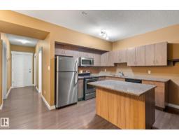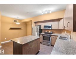 Minutes to downtown and close to Edmonton’s best restaurants, shopping, and nightlife, this 790 sq ft condo nails the “easy city living” vibe. Tall ceilings and an open layout make the space feel bright and airy, while large windows bring in tons of natural light. The kitchen is the centerpiece with granite counters, a big island for prep and hosting, and stainless steel appliances. Wood style flooring keeps it clean and durable. The primary bedroom easily fits a king bed and includes a private dressing area that leads into a modern ensuite with a glass shower. A second room gives you options as a home office, guest space, or flex room. You also get a second full bathroom, in suite laundry, and air conditioning for summer comfort. Step outside to an oversized balcony with a gas line for your BBQ and plenty of room for patio furniture, perfect for summer evenings. Complete the package with underground parking for secure, year round convenience. (id:36536)