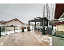 Incredible 2 storey home in the beautiful area of South Terwillegar. This home offers a front porch and nicely finished basement with entertainment area and a 4th bedroom. When you walk into this home you will find a beautiful and cozy living room with a warm fireplace. Brand new granite counter tops are a great addition to the kitchen. Just off the kitchen you will find a huge deck that has a gazebo and a beautiful back yard. The detached double garage has plenty of storage space in the attic. The home offers 3 bedrooms upstairs with the master having an ensuite with a soaker tub and walk in closet. Bedrooms 2 and 3 offer plenty of room. The laundry room is located on the main floor. The property is conveniently located very close to a park. A beautifully done home with a finished basement, large deck and a 2 car garage with plenty of storage. (id:36536)