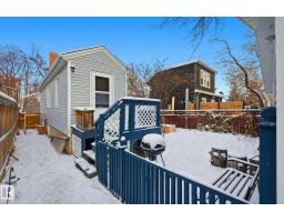 Character home opportunity in an awesome central location! Set on an elevated lot with distant ravine views, this property offers charm, important upgrades, and future potential. The home features an updated kitchen with Kitchen Craft cabinets, mosaic tile backsplash, and newer appliances. Major improvements completed in 2023 include updated electrical, roof, foundation work, weeping tile, sump pump. Providing peace of mind for buyers. Enjoy the comfort of a spacious heated double detached garage (garage roof replaced in 2020). Renovate and enjoy the character, or explore the potential for a future custom infill build (buyer to verify with the City). A fantastic opportunity in a sought-after central location close to river valley trails, Whyte Avenue, and local amenities. (id:36536)